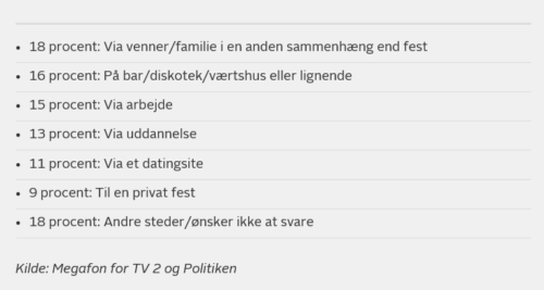 Omkring 18 % af de adspurgte har mødt deres kæreste via netværk i en anden sammenhæng end fester.