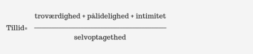 Ifølge bogen kan du måle din egen tillidsgrad ved hjælp af denne formel: